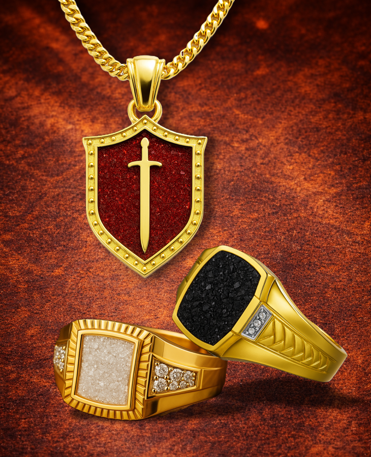 PRECIOUS CRUSH Men offers the most popular color directions in men’s jewelry. Cool blues like sapphire, topaz, and turquoise bring depth and freshness, while warm tones like ruby, garnet, and carnelian add richness and intensity. In flat or Cabochon CRUSH, they create bold color stories with a masculine point of view.